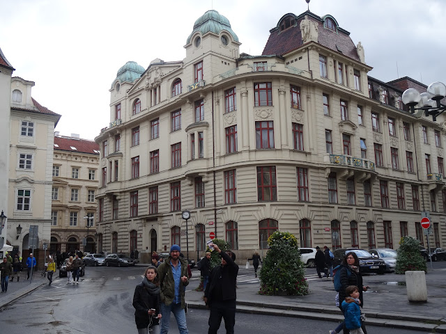 Muszę Wam powiedzieć, że praskie  kamienice zrobiły na mnie ogromne wrażenie wizualne. Śliczne, kolorowe ściany oraz bogato zdobione fasady wyglądają niezwykle dostojnie i atrakcyjnie. Zobaczcie zresztą sami. Niestety pogoda nie za bardzo dopisywała, więc elewacje nie mogą zaprezentować się w swojej pełnej krasie.